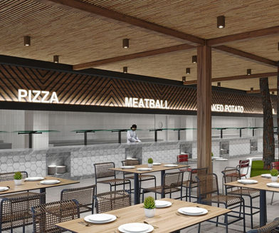 Bu proje, günümüzün hızlı yaşam temposuna uygun olarak tasarlanan, fonksiyonel ve estetik bir snack restoran alanıdır. Açık hava konseptiyle bütünleşen doğal ahşap tavan kaplamaları, yarı geçirgen pergolalarla birlikte mekâna hem gölgelendirme hem de mimari derinlik kazandırmaktadır. Doğal malzemelerin modern çizgilerle buluştuğu tasarım dili, kullanıcı dostu bir deneyim sunmayı amaçlamaktadır.